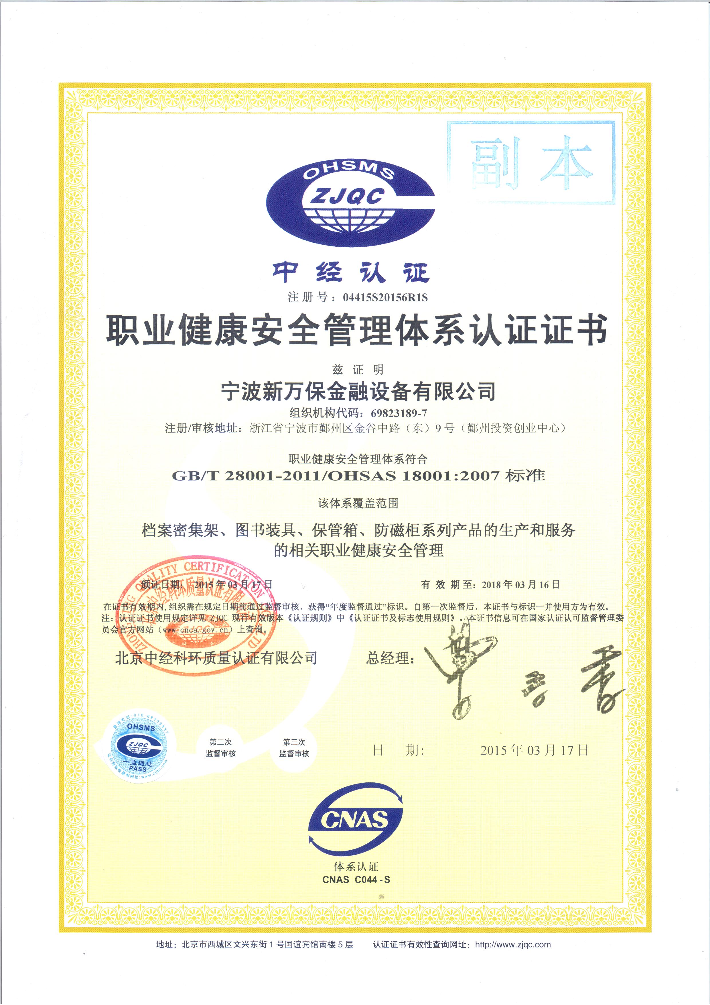 職業(yè)健康體系認(rèn)證證書