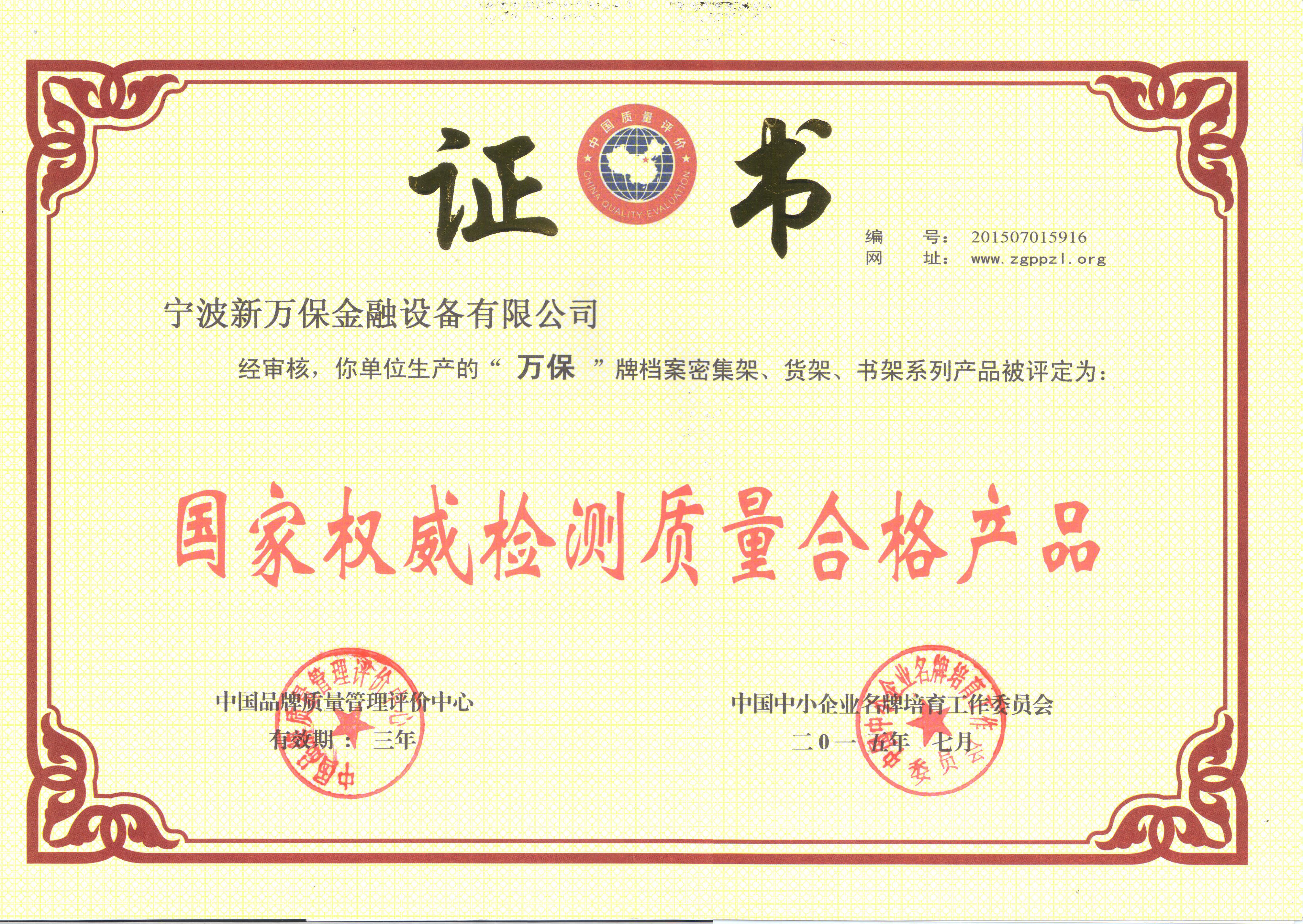 國家權(quán)威檢測質(zhì)量合格產(chǎn)品證書