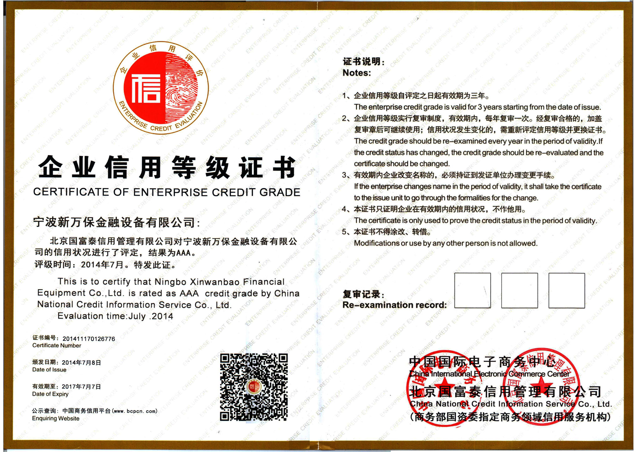 企業(yè)信用AAA級證書