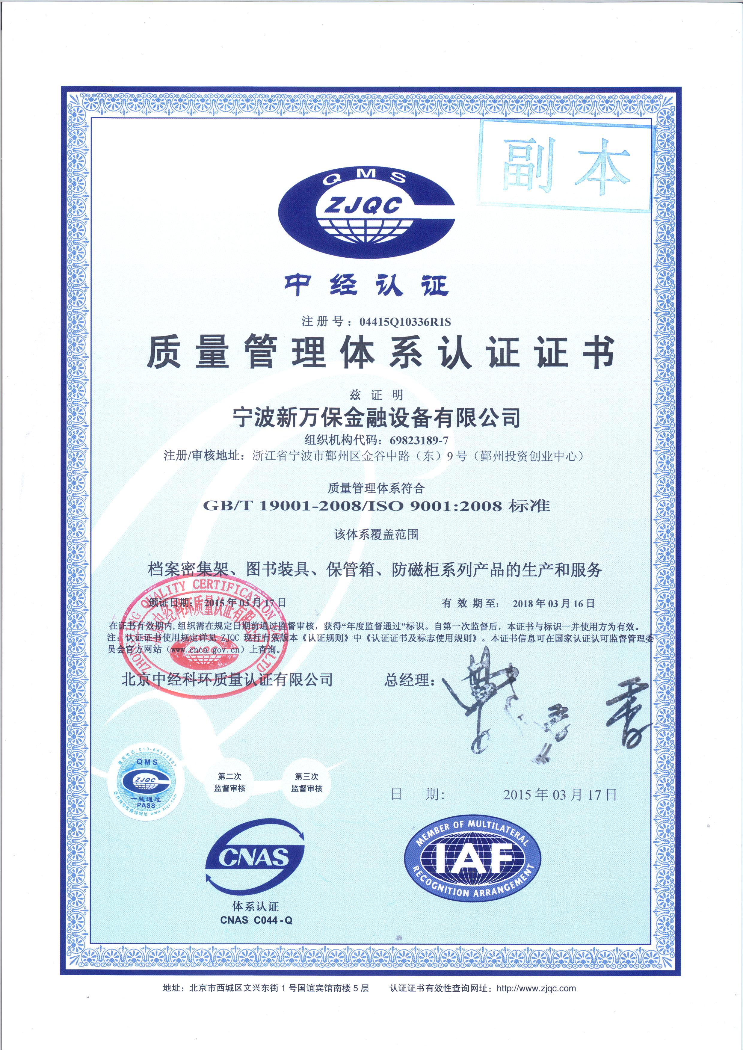 質(zhì)量管理體系認(rèn)證證書