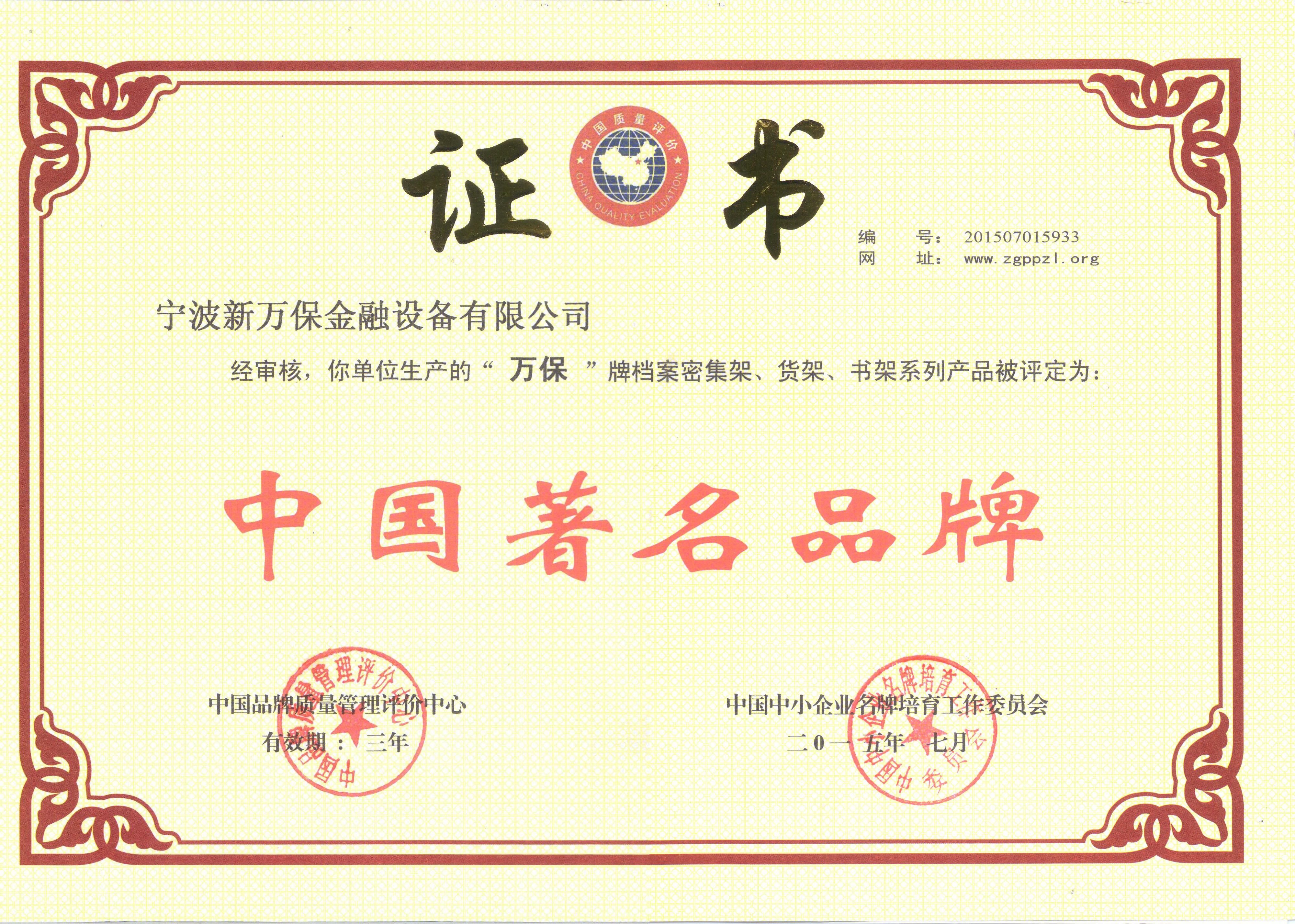 中國著名品牌證書