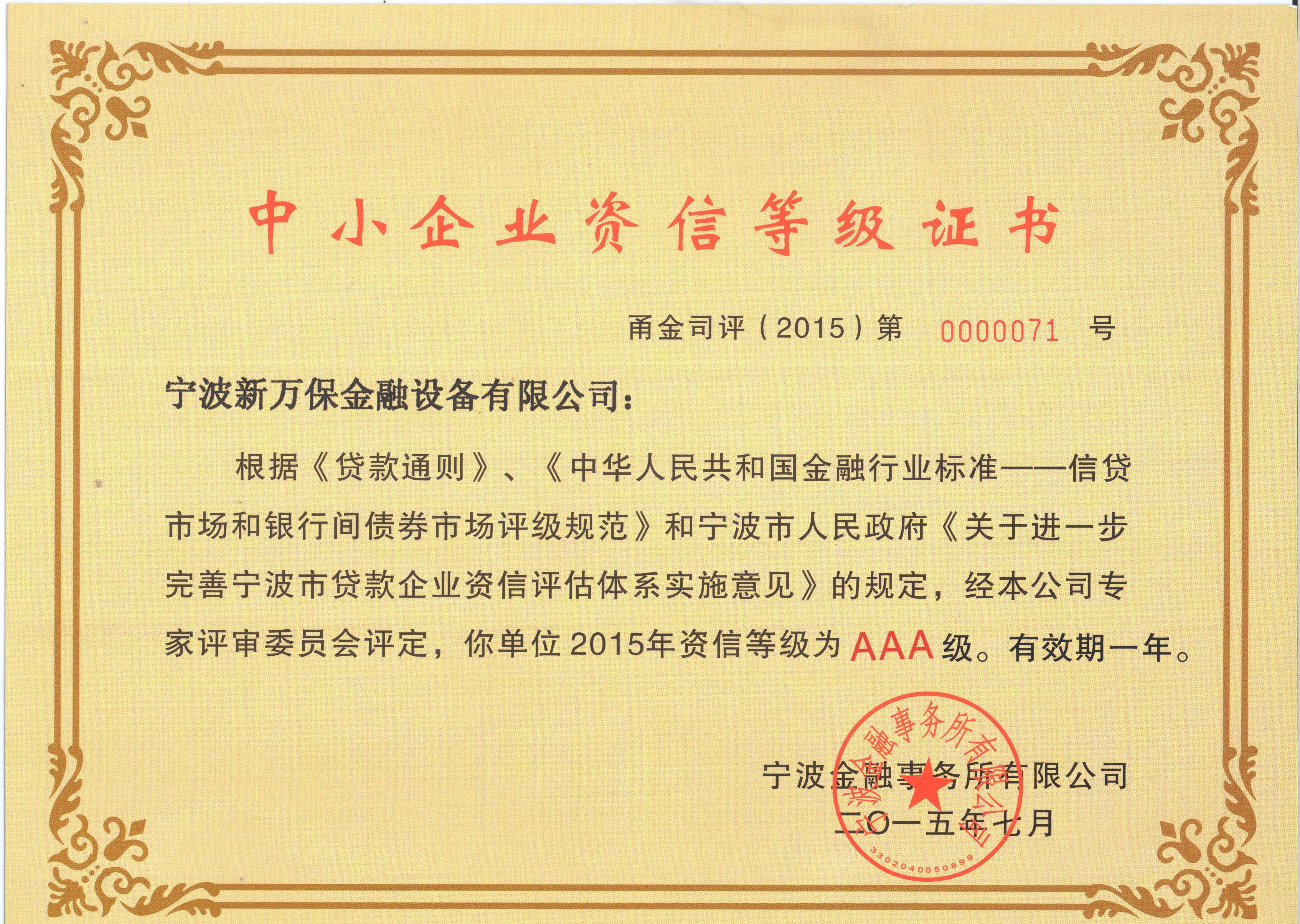 中小企業(yè)資信等級AAA證書