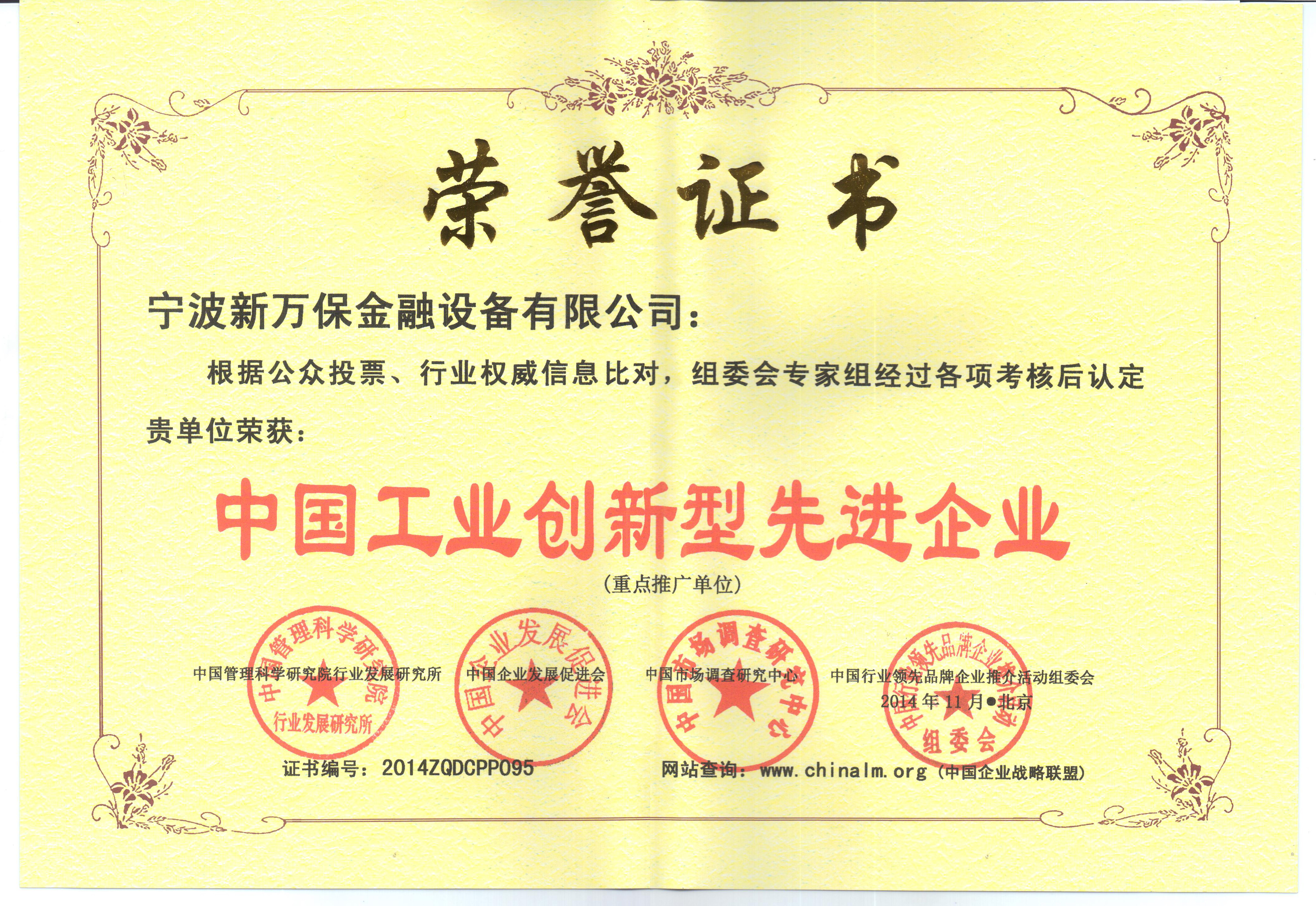 先進(jìn)企業(yè)證書