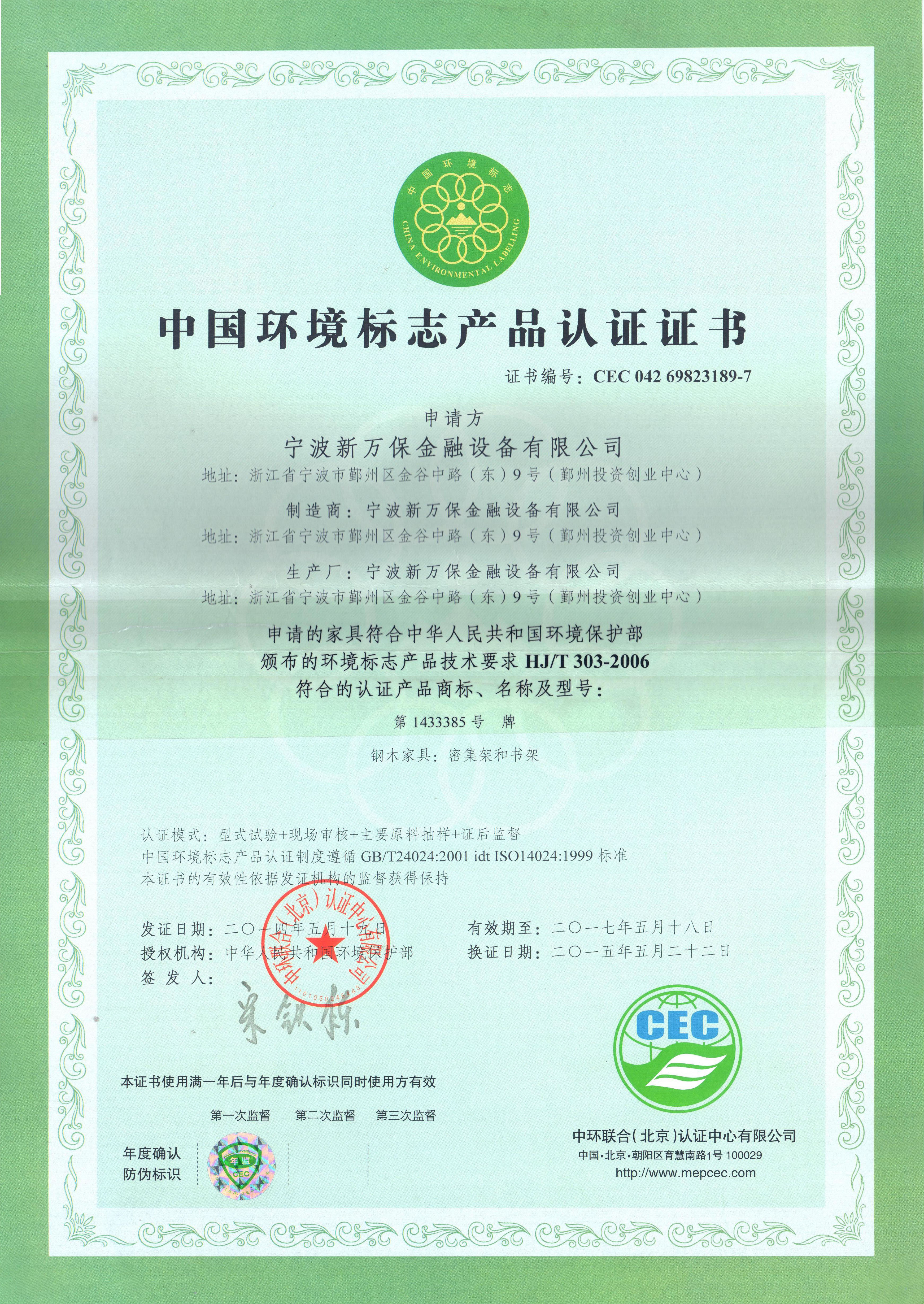 中國環(huán)境標(biāo)志產(chǎn)品認(rèn)證證書