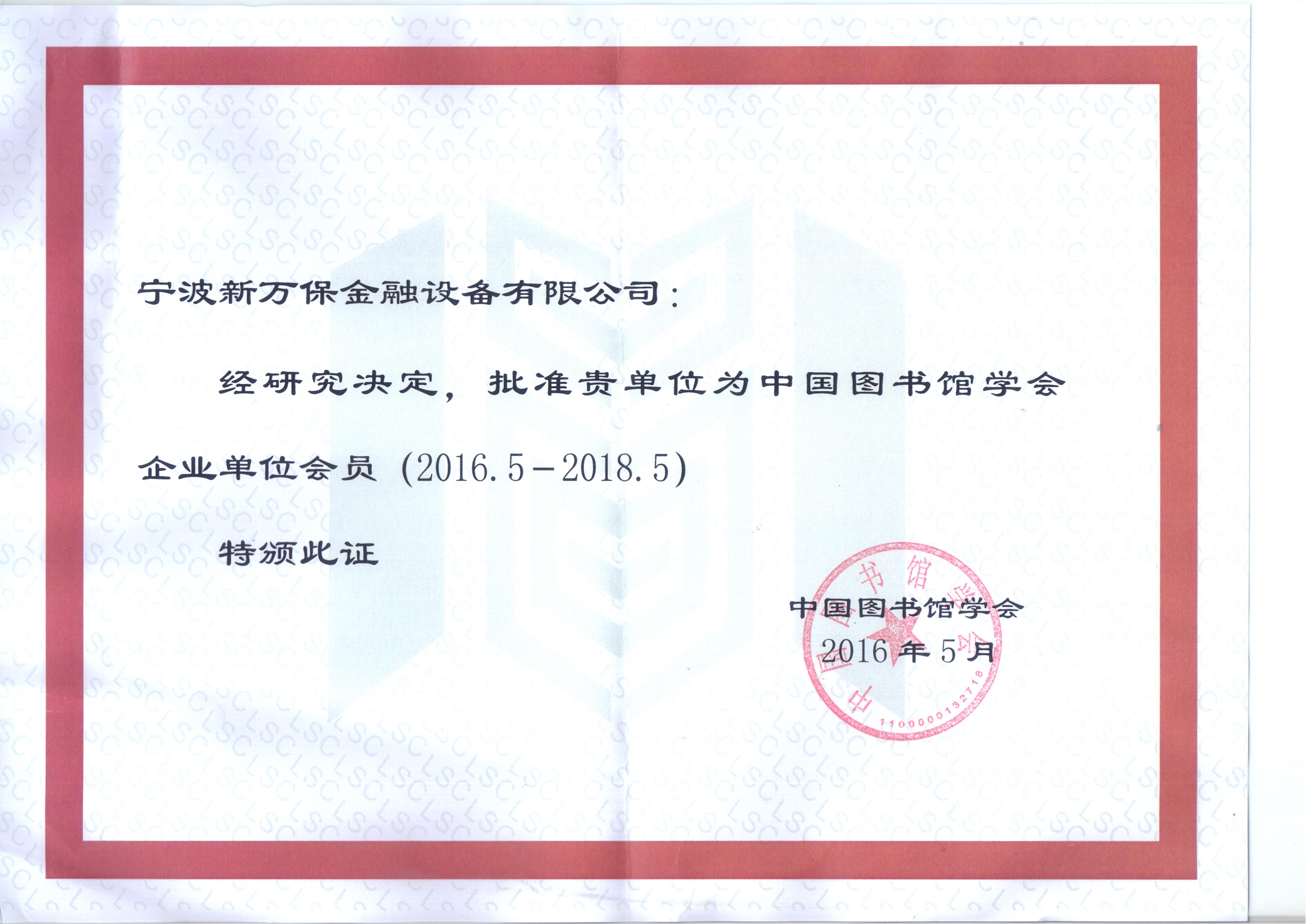 中國圖書館學(xué)會企業(yè)單位會員證書