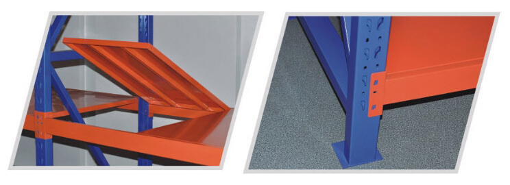 中型貨架又稱次重型貨架、中量型貨架。采用蝴蝶型孔專用貨架立柱型材。貨架橫梁采用冷軋P型閉口梁,柱片為裝配式結構,橫梁與柱片之間采用柱卡插接連接,并設以安全銷鎖定;貨架構件材料截面優(yōu)化,精度高,P型管梁結構,承載能力強,克服了L型梁易產生扭曲變形的缺陷。全組裝式結構,安裝、拆卸方便靈活;外形美觀,結構合理,堅實耐用,承載力較大,可隨意組合,能充分利用空間,層高可自由調整,適合中型倉庫使用。層高節(jié)距可任意可調;貨架材料為寶鋼、馬鋼優(yōu)質冷軋鋼材,可靠品質、承載性能大、外觀優(yōu)美。相鄰背靠背方向柱片之間采用斜拉隔撐加強連接,隔板底部設置加強筋,提高了系統(tǒng)的安全可靠性。產品獲得了國家專利。