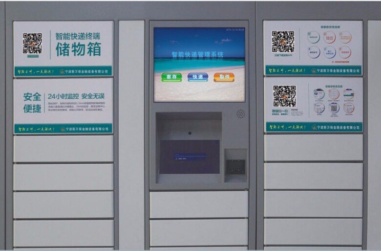 新萬保智能快遞柜系列產(chǎn)品,使快遞人員統(tǒng)一將快件放至指定地點(diǎn)的自提柜中,由收件人自行提取。
